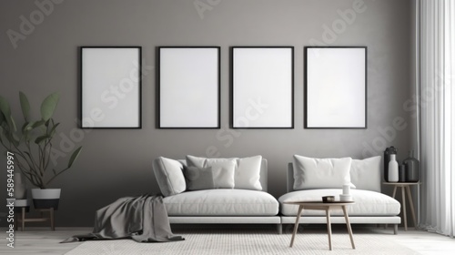 Elevate Your Decor with this Blank Picture Frame Mockup on a Gray Wall White Living Room