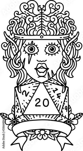 elf barbarian character with natural twenty dice roll illustration