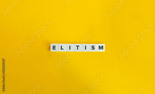 Elitism Word on Block Letter Tiles on Yellow Background. Minimal Aesthetics.