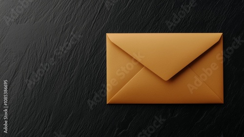 Email marketing concept. Brown envelope on a textured black surface.