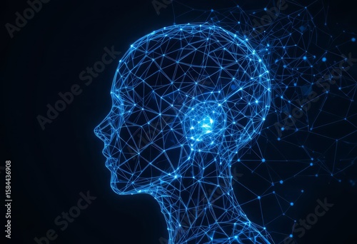 Embrace the future of AI identity and digital humans with this cybernetic wireframe face design ideal for tech-focused content