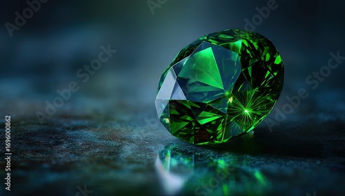 Emerald-green gem, dramatic lighting
