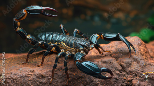 Emperor Scorpion Poised on Rock with Claws and Stinger Ready