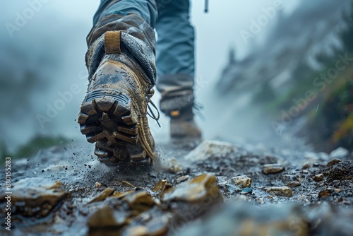 emphasizes the physicality and determination of walking through challenging terrain.