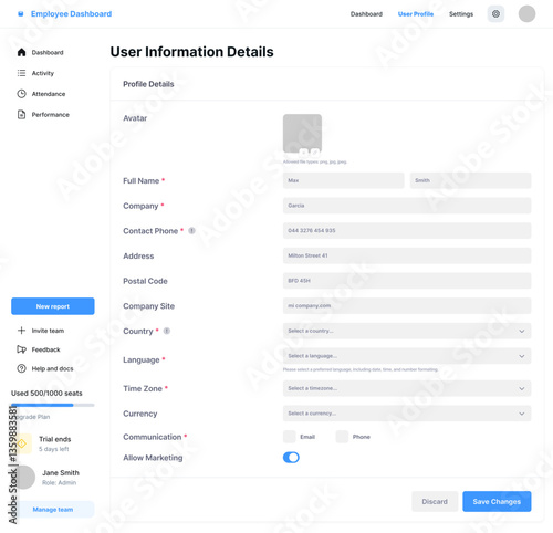 Employee Dashboard, Workforce Management Panel, Staff Monitoring System, HR Control Center, Team Performance Tracker, Personnel Management Interface, Workplace Analytics Hub,