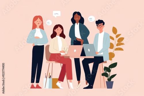 Empowering Diversity: Hand-drawn Vector Illustration of Team Designing Inclusive Workplace with Focus on ESG Governance