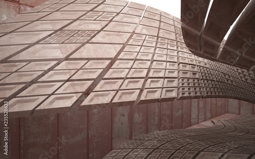 Empty abstract room interior of sheets rusted metal and brown concrete. Architectural background. 3D illustration and rendering