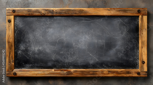 Empty blackboard with chalk smudges and textured surface for education or presentation use.