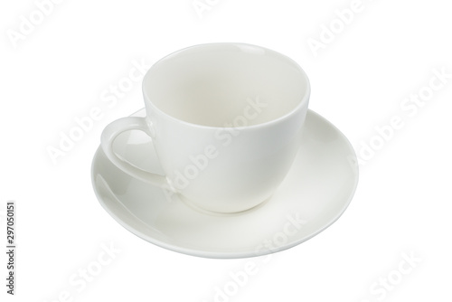 Empty coffee cup White ceramic isolated on white background.Top view.Mockup template for design or advertising