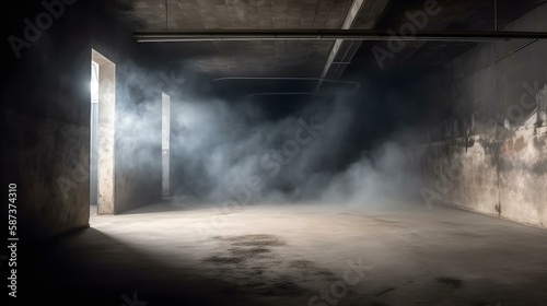 Empty Concrete Room with Smoke or Steam on the Floor