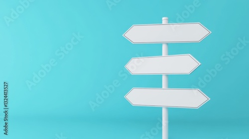Empty Directional Signpost with Blank Arrows on Blue Background