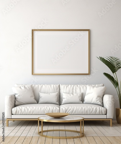 Empty Frame inside a Luxurious & Modern Living Room of color White. Generative AI.