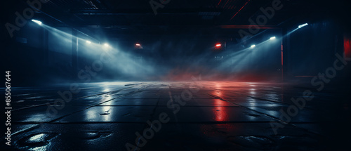 Empty futuristic dramatic scene, abstract dark landscape city, digital art concept illustration.