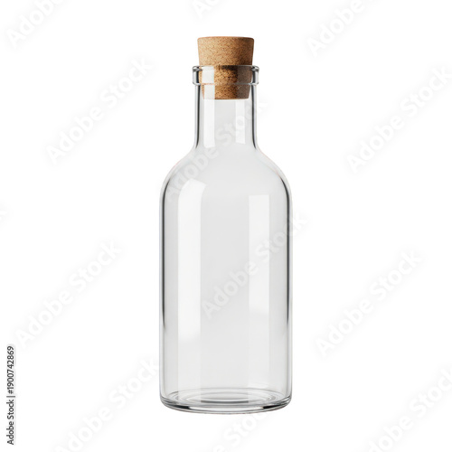 Empty glass bottle with cork stopper isolated on transparent background