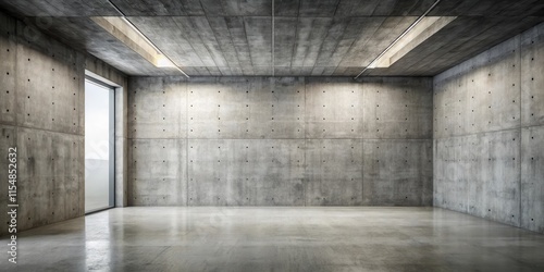 Empty industrial space with concrete walls and ceiling, featuring a large window offering natural light