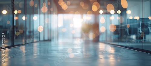 Empty office space with blurred design elements creating an abstract light bokeh effect suitable as a copy space image
