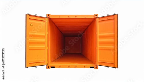 Empty Orange Shipping Container Interior With Open Doors Ready For Storage Or Transport