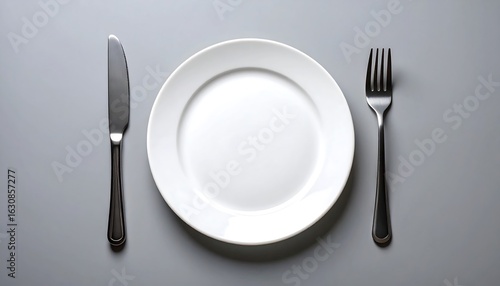 Empty plate and utensils on gray surface