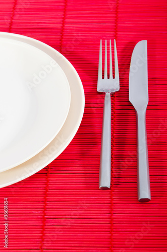 Empty plate with utensils