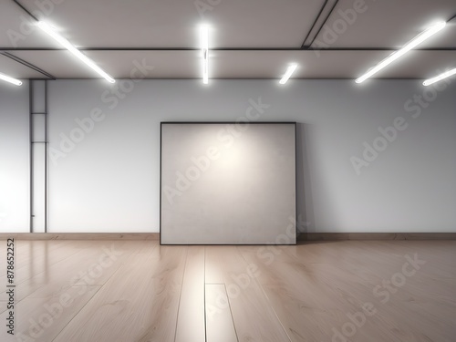 empty room with a white wall and empty painting with a frame