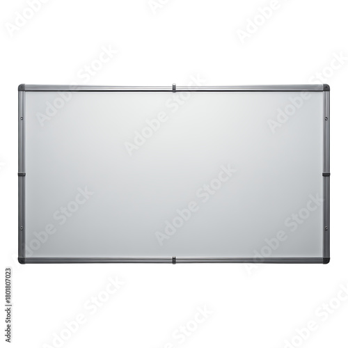 Empty Silver Whiteboard with Metal Frame on White Background