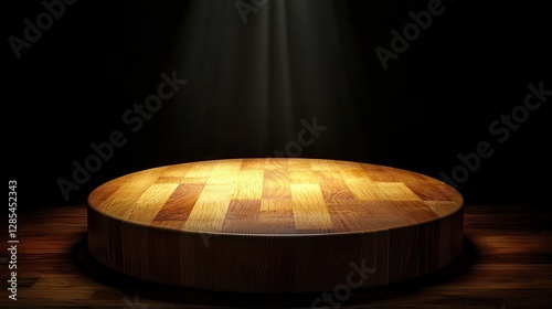 Empty Spotlight Stage with Wooden Platform in Dark Environment