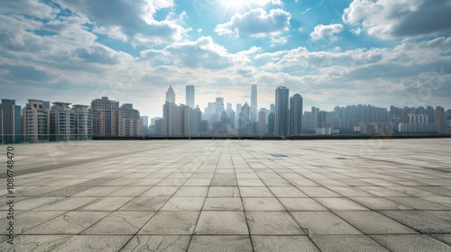 Empty square floor with city skyline background, Urban Renewal Project, morning