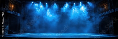 Empty Stage with Blue Spotlight and Smoke