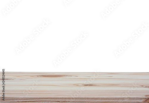 Empty wood table top isolated on white background with clipping path and copy space for display or montage your products