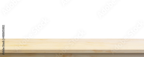 Empty wooden table top isolated on white background for product display montage
