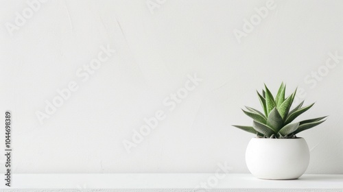 Empty workplace with white desk and succulent plants in the foreground, copy space