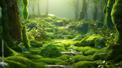 Enchanted Forest Landscape with Lush Moss