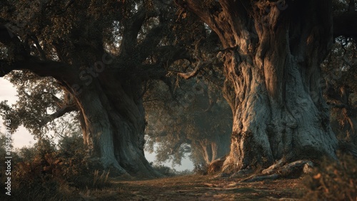 Enchanted Forest Pathway with Ancient Trees