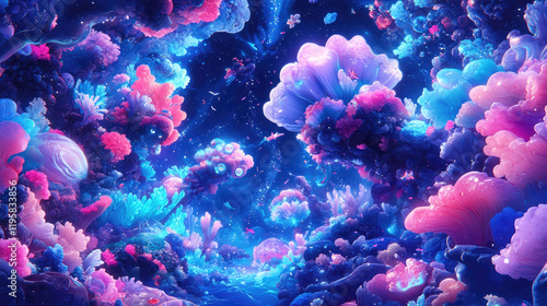Enchanted Underwater Realm: A Dreamlike Digital Painting of Luminescent Coral and Marine Life
