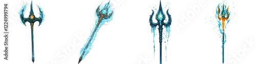 Enchanted Vector Illustration of Tridents in Unique Styles with Stitched Details