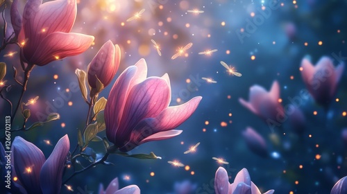 Enchanting blooming flowers mystical garden digital art tranquil atmosphere close-up view nature's beauty