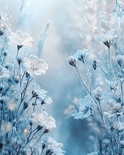 Enchanting Frost-Covered Flowers A Breathtaking Winter Botanical Image