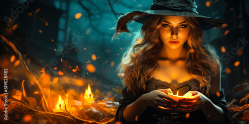Enchanting Halloween Witch Girl: Portrait of a Beautiful Spellcaster
