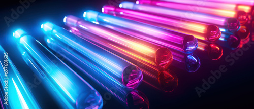 Enchanting neon glow in dark, with a blurred line of colorful light.