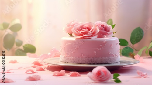 Enchanting Rose Cake: A Delicate Pink Delight Amidst a Serene Environment