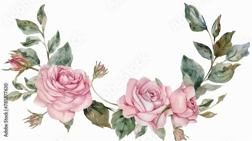 enchanting watercolor floral wreath with delicate pink roses and green leaves romantic wedding illustration