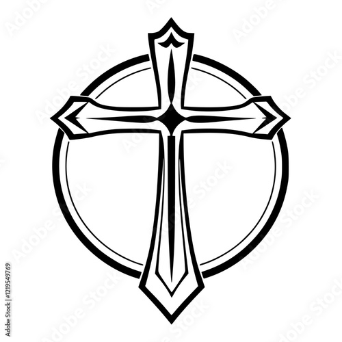 Encircled Cross: A Sacred Symbol of Faith and Spirituality. This captivating graphic design showcases a stylized cross within a circle, representing religious devotion and spiritual beliefs.