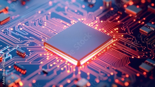 Encrypted data flow through microchip, security protocol visualization, illustration