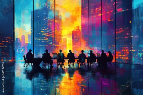 Energetic Abstract Meeting Scene with Glowing Highlights