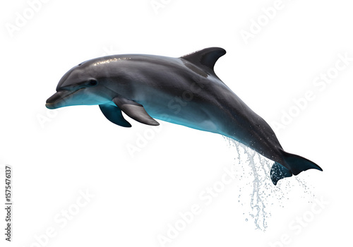 Energetic dolphin mid-jump captured in motion, perfect for marine, wildlife, or ocean-themed visuals. Isolated on white or transparent background. PNG format.
