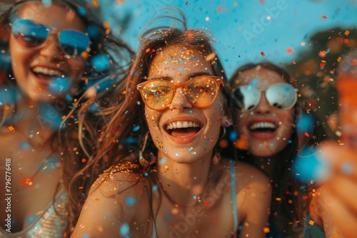 Energetic group of friends sharing a fun moment with confetti, embodying youth and high spirits