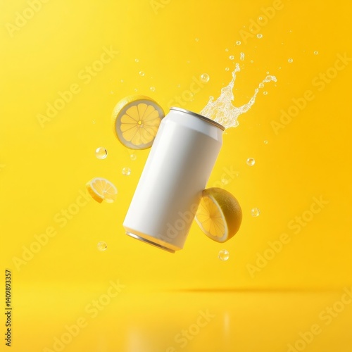 Energetic Lemon Drink with Floating Slices and Splash Effects