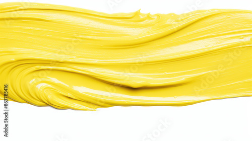 Energetic yellow paint brush stroke on a white backdrop for vibrant design projects.