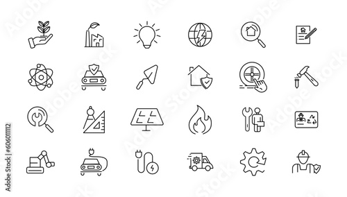 Energy and industry linear icons collection. Energy and industry line icons set. Vector illustrator.