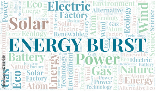 Energy Burst word cloud. Wordcloud made with text only.